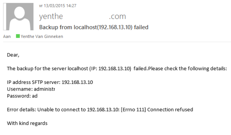 Do you want to know if the database backup failed? Check the checkbox 'Auto. E-mail on backup fail' and fill in your e-mail. Every time a backup fails you will get an e-mail in your mailbox with technical details.