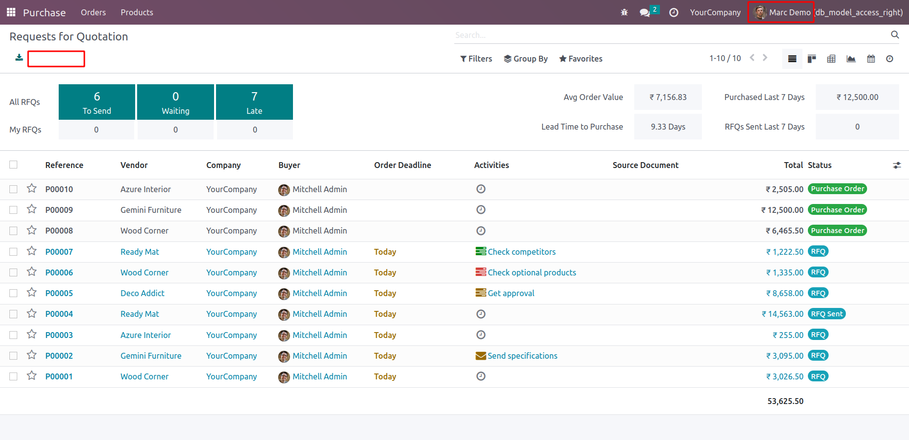 User in the Purchase module
